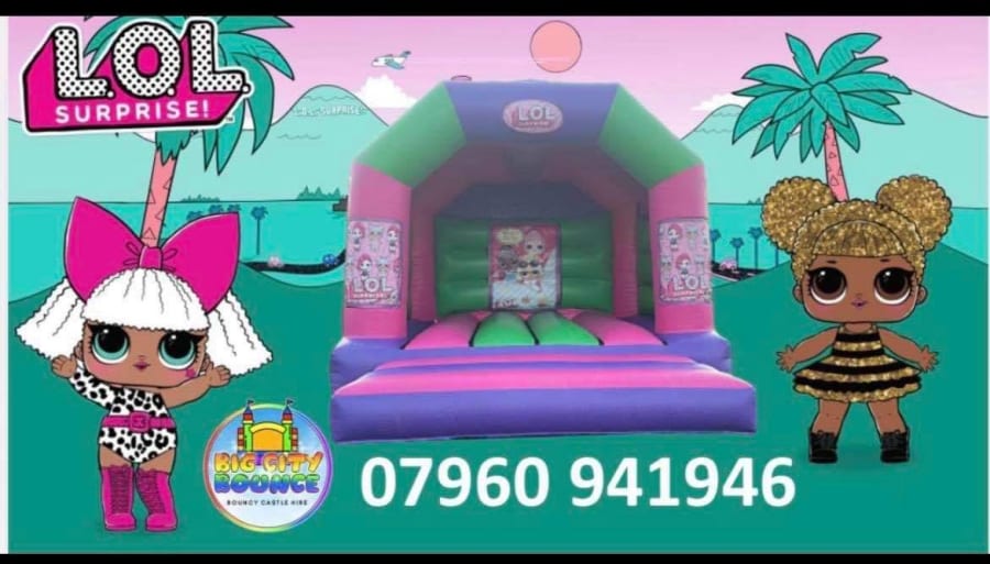 This our 15x12ft Stunning Pink,Green and Purple Lol Suprise Bouncy Castle this is one of our most popular castles at the minute with all your little dolls loving it will make them want to bounce the whole day away so why not turn it into a overnight stay for little fee of £10 to bounce round with her favourite dolls all night long.