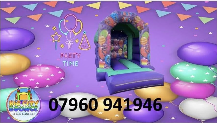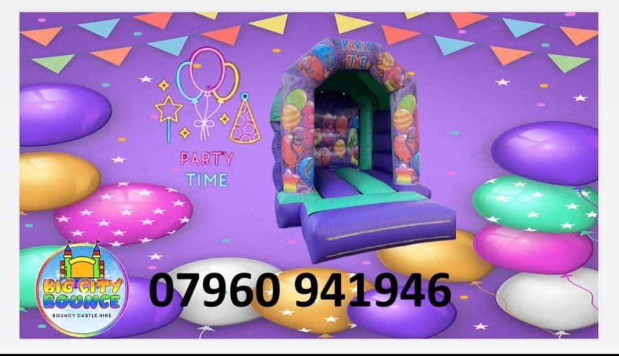 Don't have a large garden?? don't worry we got you covered with our 8x11ft ft purple and green Party Time Bouncy Castle is perfect for all you smaller gardens out there this inflatable is perfect for any occasion any age with balloons located all around the castle to give it that all round party vibe!!